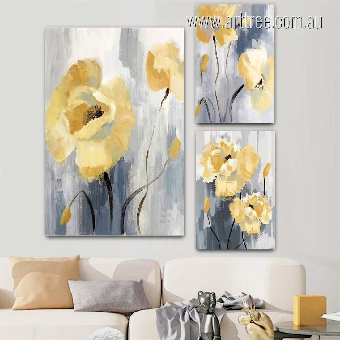 Abstract gray tones and a marble-like texture define this modern three-panel canvas set. These Australian-made prints offer a sophisticated, minimalist aesthetic, perfect for adding a touch of elegance to any room. The gallery-wrapped artwork creates a sleek, contemporary look, providing a stylish and affordable way to enhance your wall decor.
