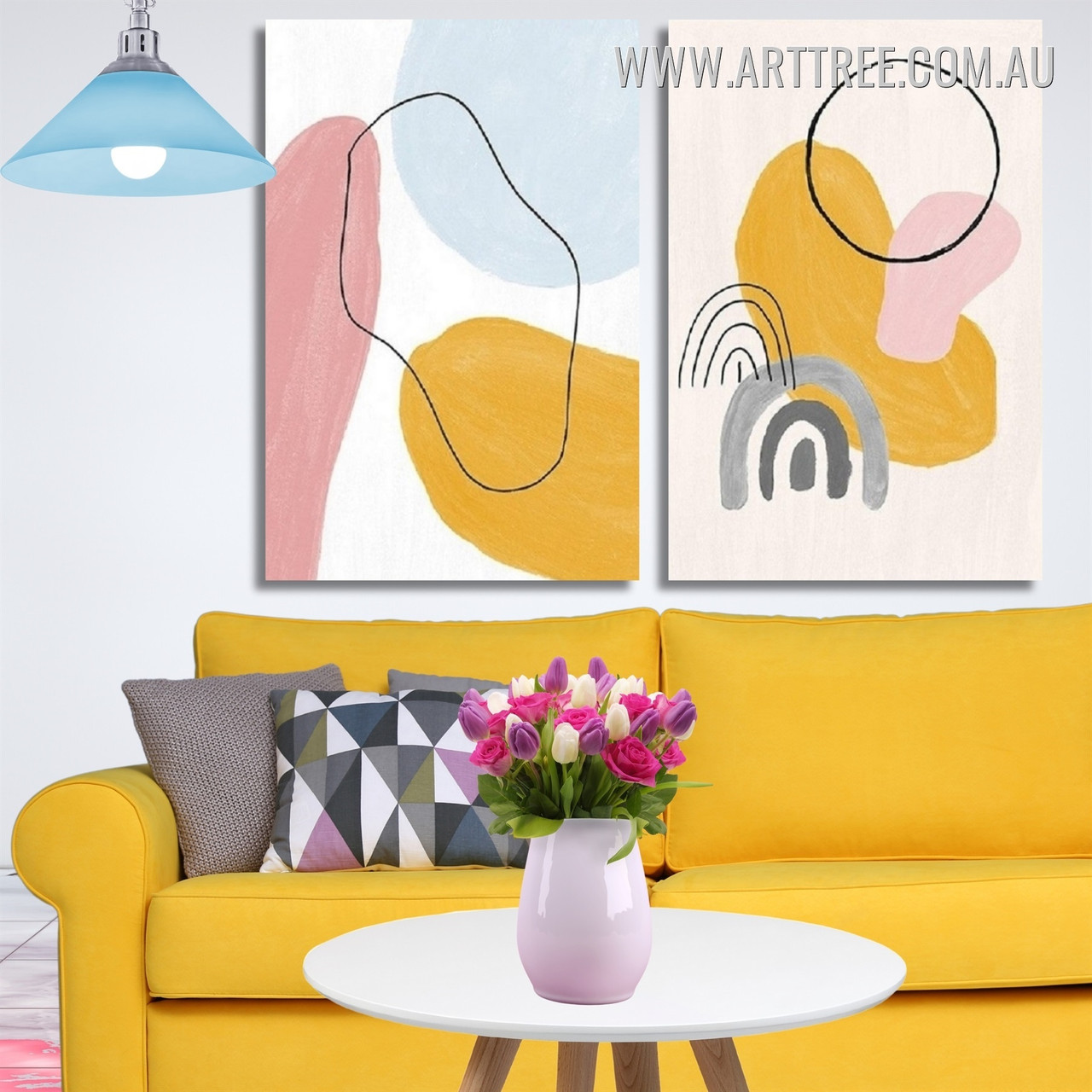 Elevate your space with this dynamic 2-panel abstract watercolor set. Featuring a blend of varied color shades, blurs, circles, curved lines, and spots, this artwork adds depth and modern artistry. Choose the finish that suits your style—either a sleek framed presentation or a ready-to-hang stretched gallery wrap—for instant impact.